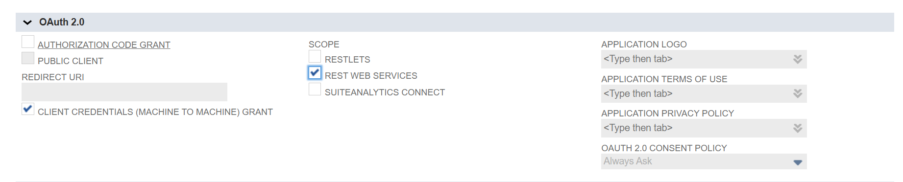 To use the NetSuite connector, REST Web Services and OAuth 2.0 must be enabled.